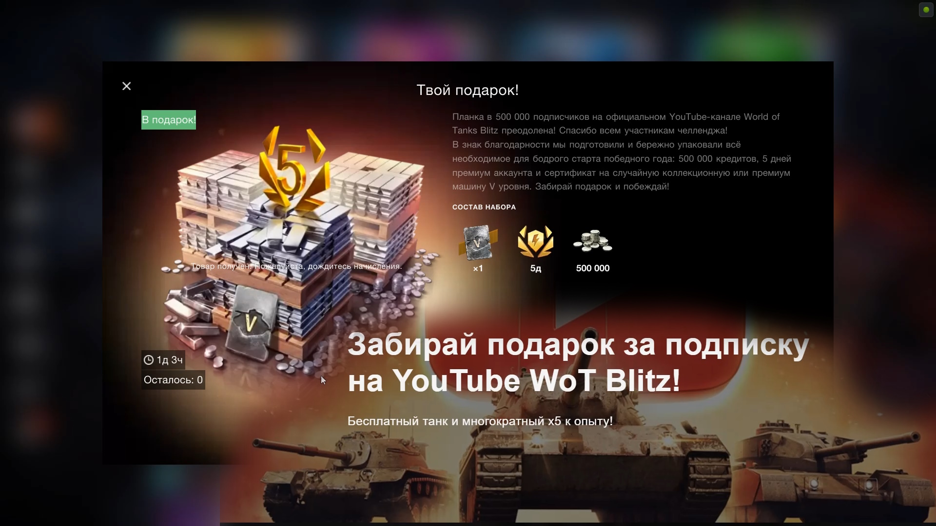 World of Tanks Blitz ✅ Танк 5 ур БЕСПЛАТНО ВСЕМ !!! с 29.12.23 по 1.01.2024 ✅