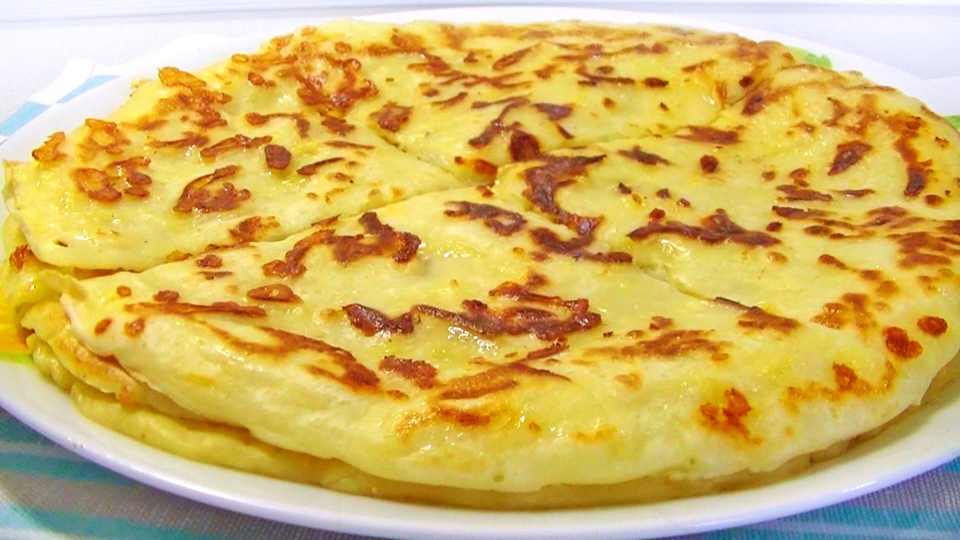 Нежнейшие, вкуснейшие лепёшки с сыром - готовятся практически моментально - 10 -15 минут и вкусный завтрак у вас на столе. Нет никаких секретов по их приготовлению, нужно просто достать продукты из холодильника и всё смешать. Тесто очень удобное – оно просто выливается на сковородку. Совет: в тесто можно добавить немного некрупного творога. Продукты: 2 яйца 2 стакана молока ½ ч. л. соли 2-2,5 стакана муки (тесто должно легко выливаться на сковородку тонким слоем) 200 грамм сыра сливочное масло 1 мерный стакан=250мл. Из этого количества теста получается 4-6 лепёшек (тесто лучше наливать потоньше), в видео рецепте я использовала сковороду d 24 см. Обжаривать лепёшки нужно на среднем огне.
