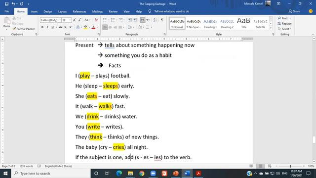 Tuesday 26/1/2021 Grammar 4E Past, Present, and Future Tenses Part 1