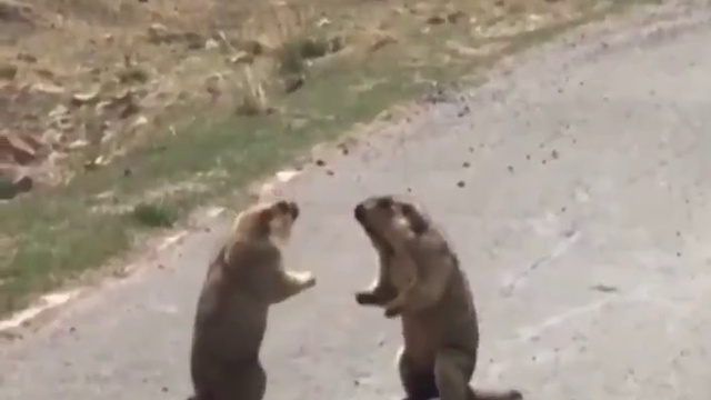 В Китае два сурка устроили драку прямо на дороге. Причиной конфликта стала дама сердца #прикол #сурки #драка #животные