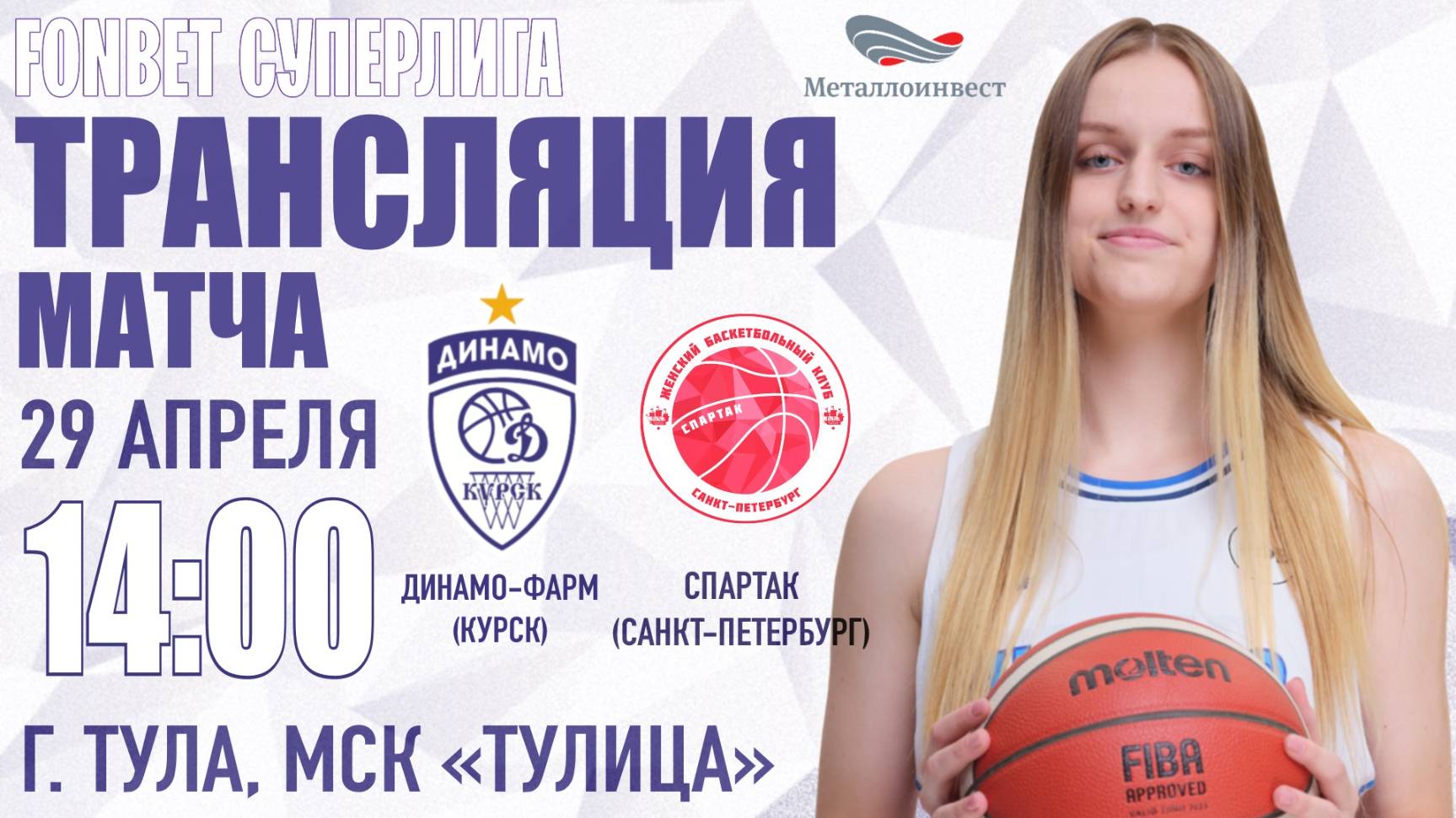 ⚔ 29.04.2025 14:00 Динамо-Фарм (Курск) - Спартак (Санкт-Петербург) 🏆 Fonbet Суперлига, Финал за 3 место 🏟 Арена: Тула, ул.Санаторная д.3, МСК 📊 Статистика: https://competitions.russiabasket.ru/superliga/women/game/?id=911554