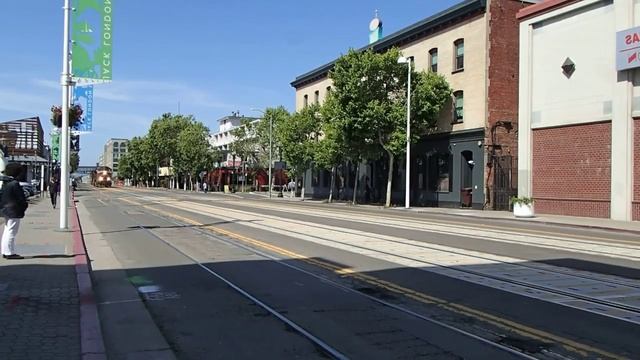 Пассажирские поезда едут через город в США красивые тепловозы везут красивые скоростные составы