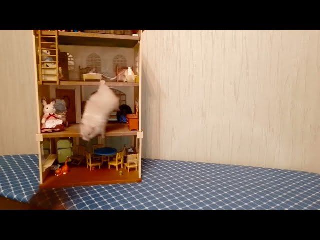 Хомяк осуществляет опасный прыжок из задымленного помещения, сбегая успевает снести куклу Глашу, ожидающую окончания задымления.......................................................................................................................................................