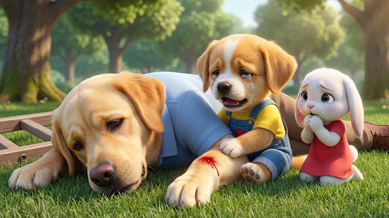 😭🎈 Папа Щенка упал, пытаясь достать воздушный шарик.. То, что сделал малыш дальше, растрогало всех