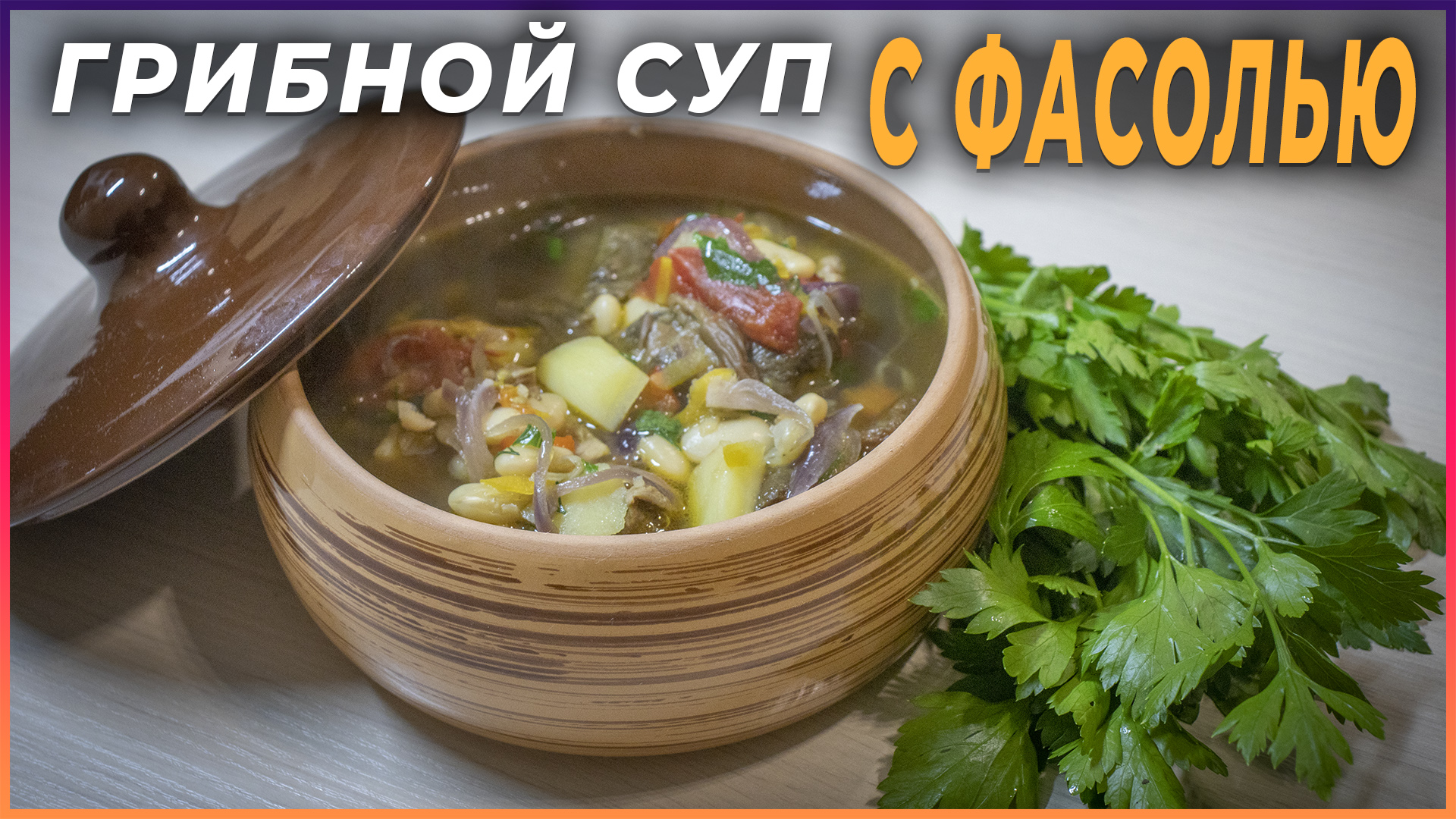 Грибной суп с фасолью и свиными рёбрышками в чугунке ВОК от iCook