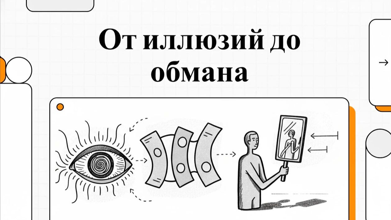 Исследование природы человеческого восприятия. Описывается иерархическая структура распознавания образов в мозге, где простые элементы постепенно складываются в сложные образы. Иллюзии и ошибки являются естественной частью адаптации, которые корректируются по мере накопления опыта и осознанного анализа. Однако центральная тема заключается в том, что эти естественные несовершенства психики становятся фундаментом для преднамеренного паразитирования и манипуляций. В завершении приводится детальный обзор методов, с помощью которых социальные институты и группы влияния используют техники искажения реальности, превращая биологическую склонность к ошибкам в инструмент контроля над сознанием. fornit.ru/69403