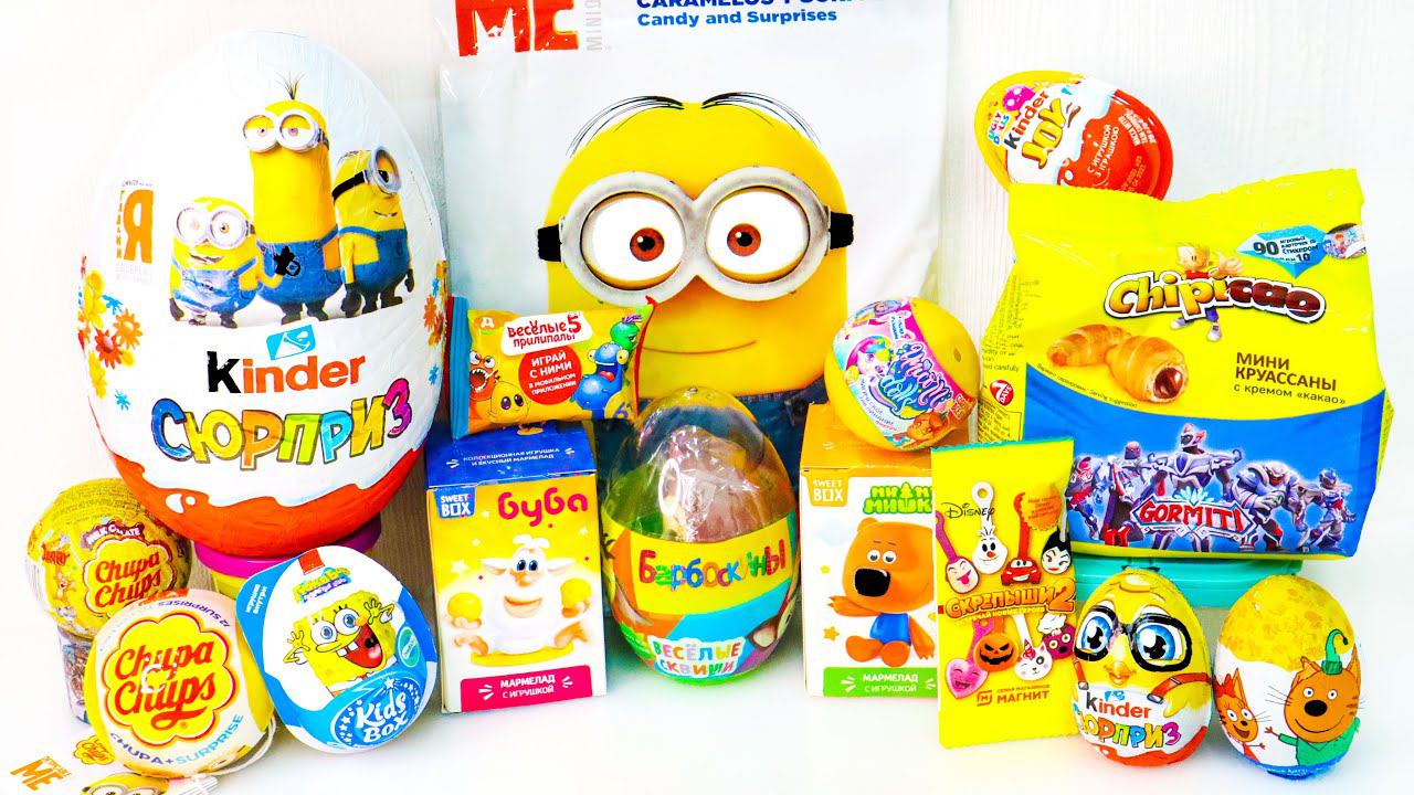 Набрала 15 ЖЕЛТЫХ СЮРПРИЗОВ Миньоны, СКРЕПЫШИ, Киндеры, Губка БОБ