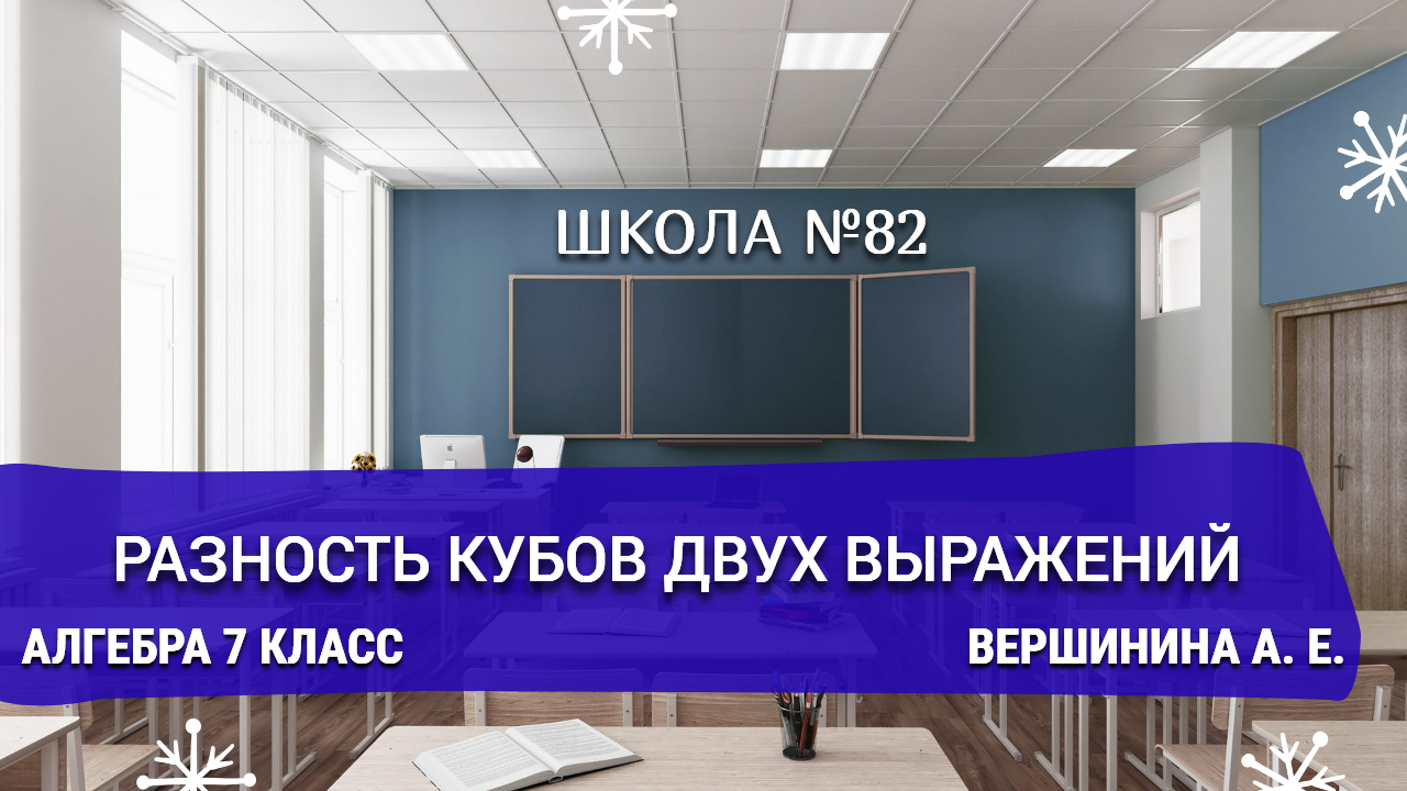 Разность кубов двух выражений. Алгебра 7 класс. Вершинина А. Е.