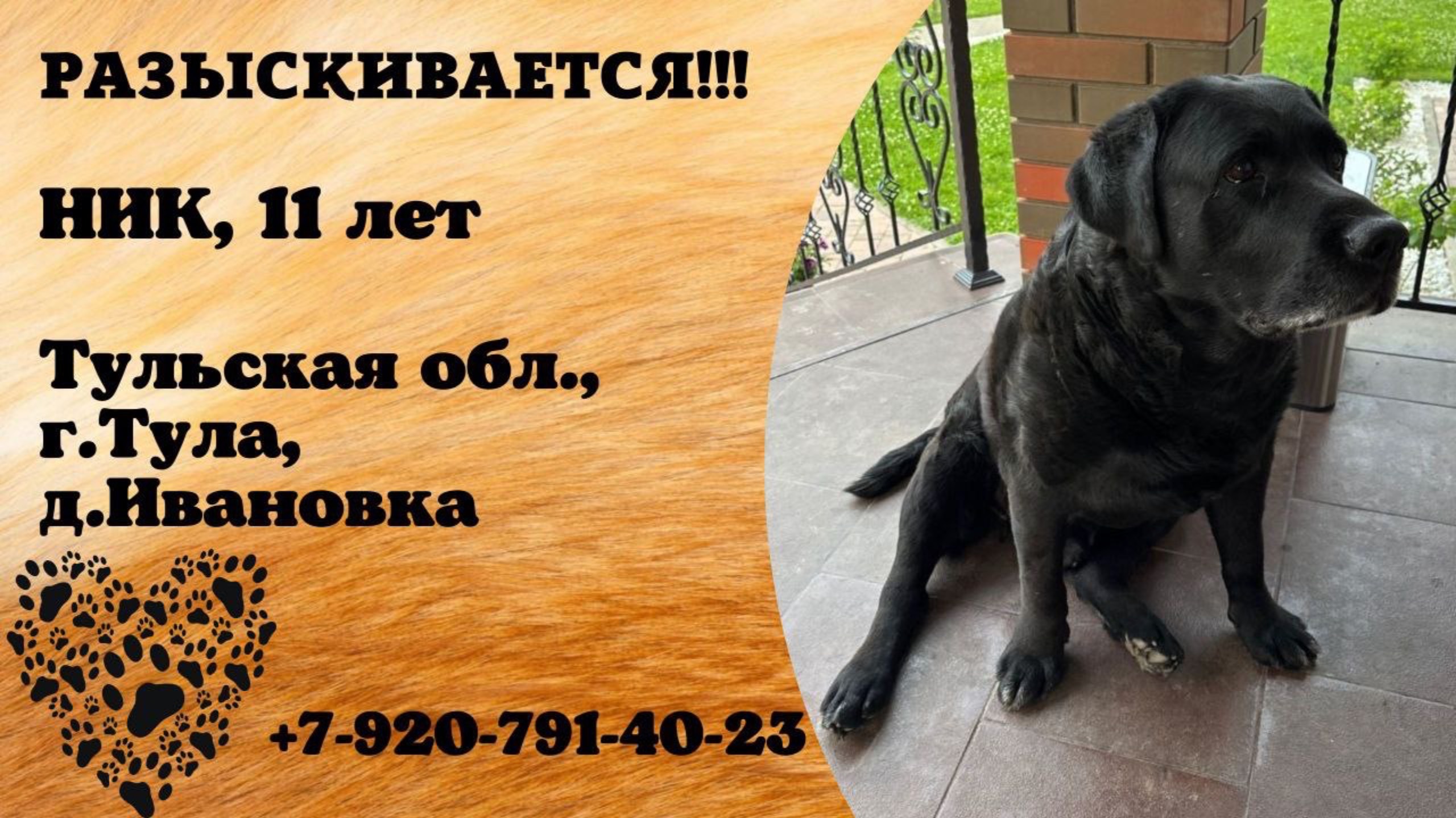 Пропала собака! НИК, 11 лет. Тульская обл., г.Тула.