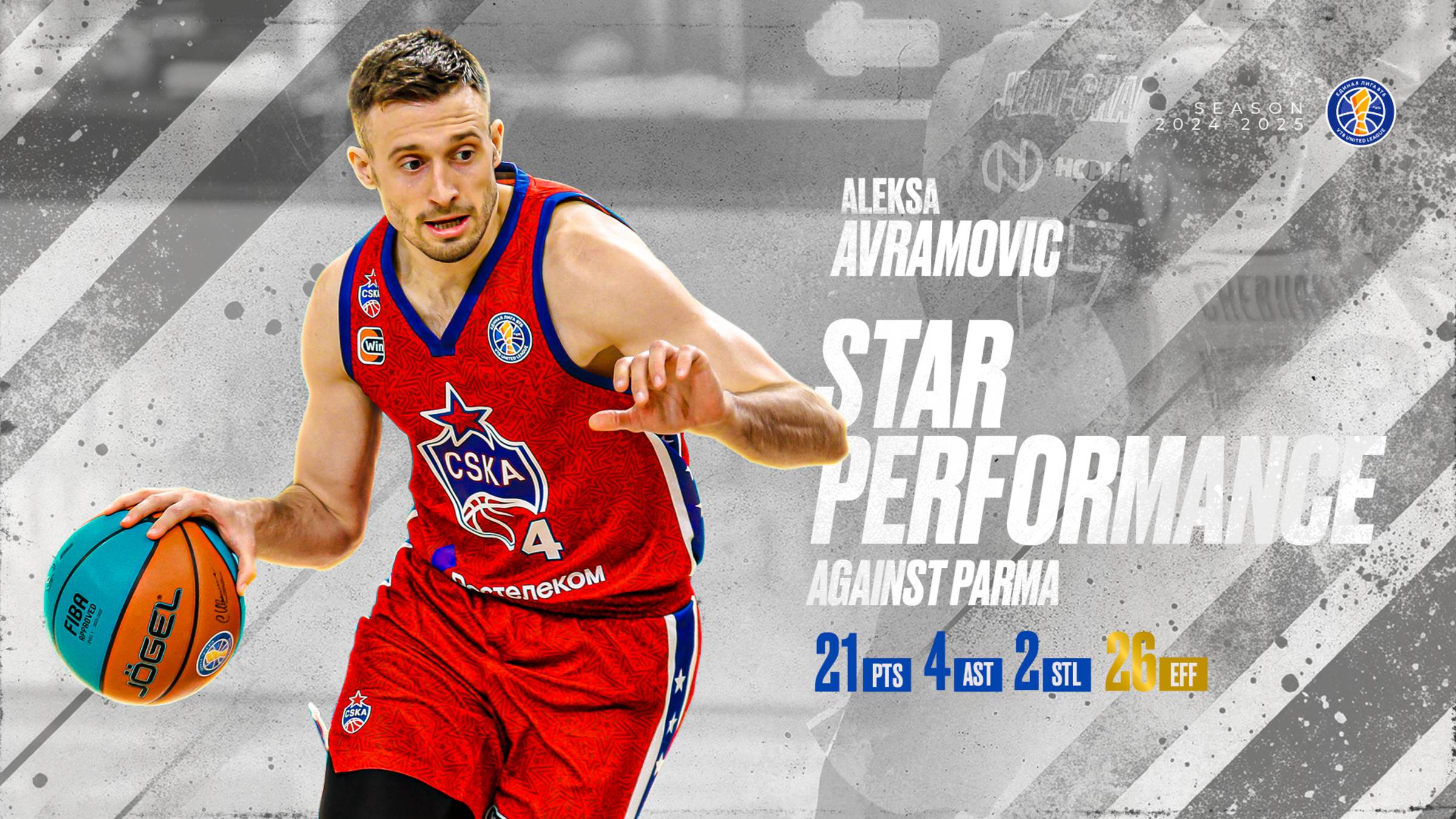 Вспоминаем героев вчерашнего дня – перфоманс Алексы Аврамовича в игре против «ПАРМЫ»! 😎 Защитник ЦСКА помог московской команде одержать 10-ю победу подряд, став лидером по результативности и эффективности! 📊 Цифры Алексы в матче: ▫️ 21 очко ▫️ 7/12 с игры ▫️ 4 передачи ▫️ 3 подбора ▫️ 2 перехвата ▫️ 26 баллов эффективности ❤️ – отличному выступлению!