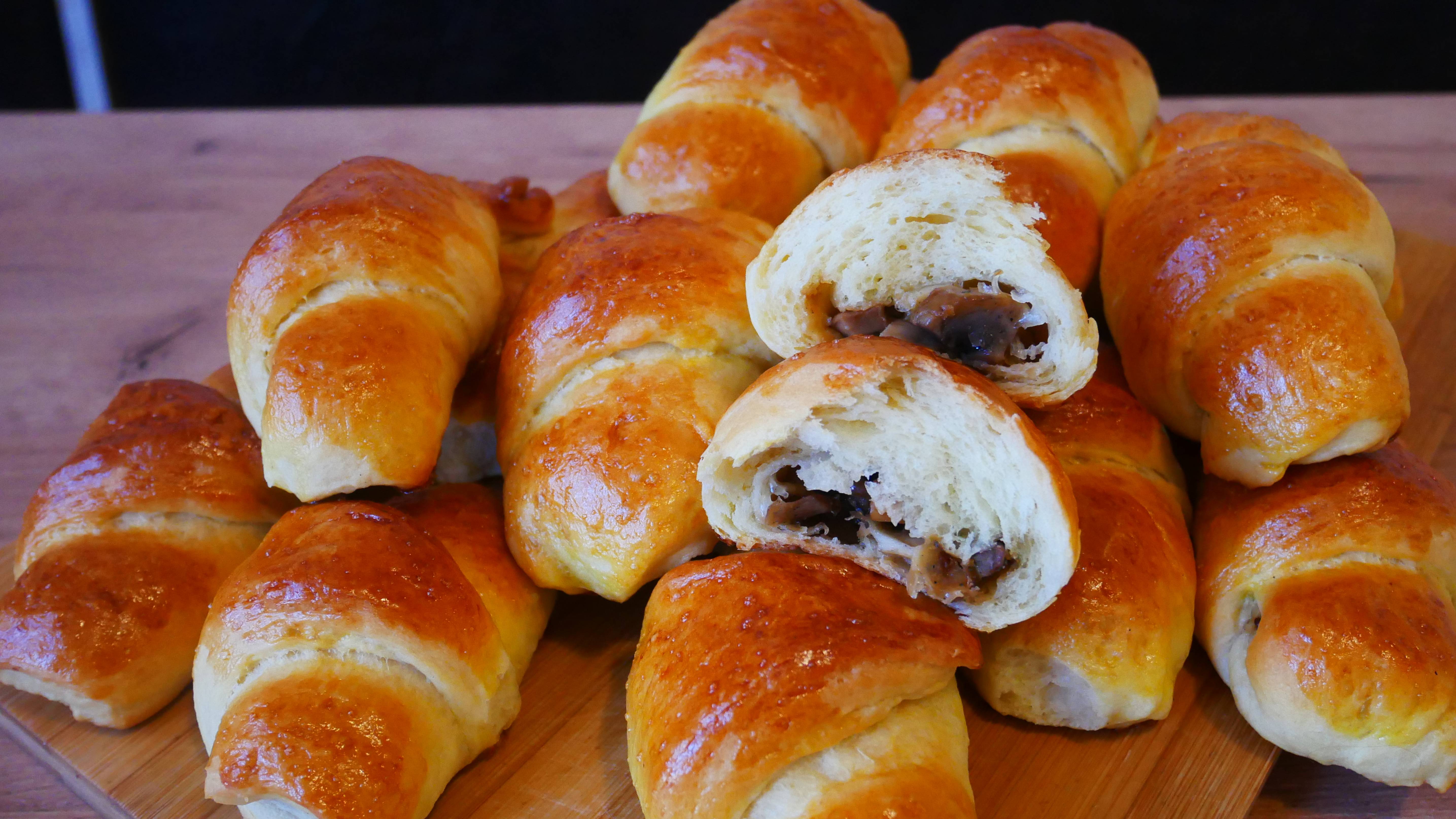 Рогалики с грибами и моцареллой Дрожжевое тесто на молоке