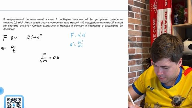 В инерциальной системе отсчёта сила F сообщает телу массой 2m ускорение, равное по модулю 0,5 - №