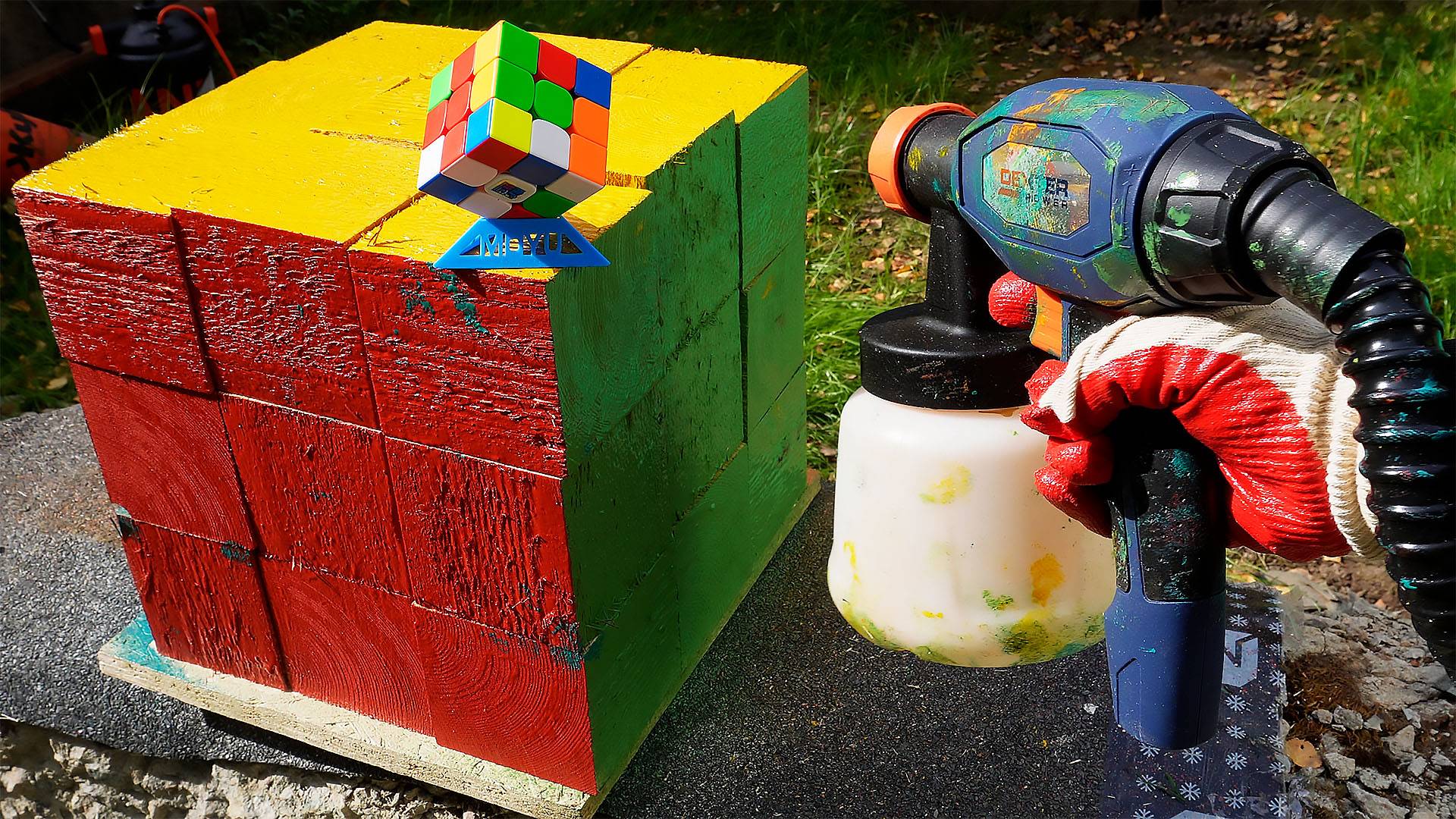 Дэн здесь и сегодня я не только расскажу вам для чего нужен Кубик Рубика 3x3, но еще и сделаю его огромную его копию из бруса, разукрашенную краскопультом Dexter. Приятного просмотра.