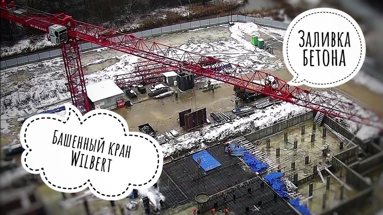 Башенный кран Wilbert WT 200. Заливка бетона. Tower crane. Timelapse