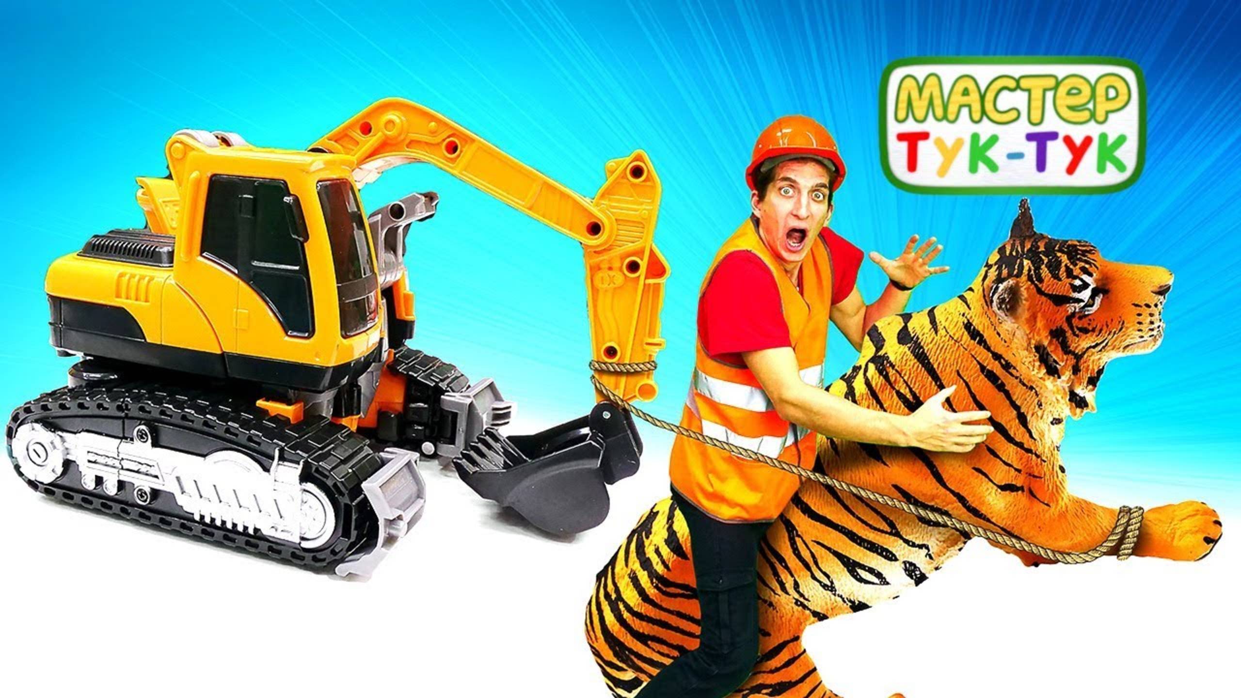 Трансформеры ТОБОТЫ и гусеничный экскаватор — Из зоопарка сбежал тигр! — ЛОВИМ ТИГРА! Тук-Тук Шоу