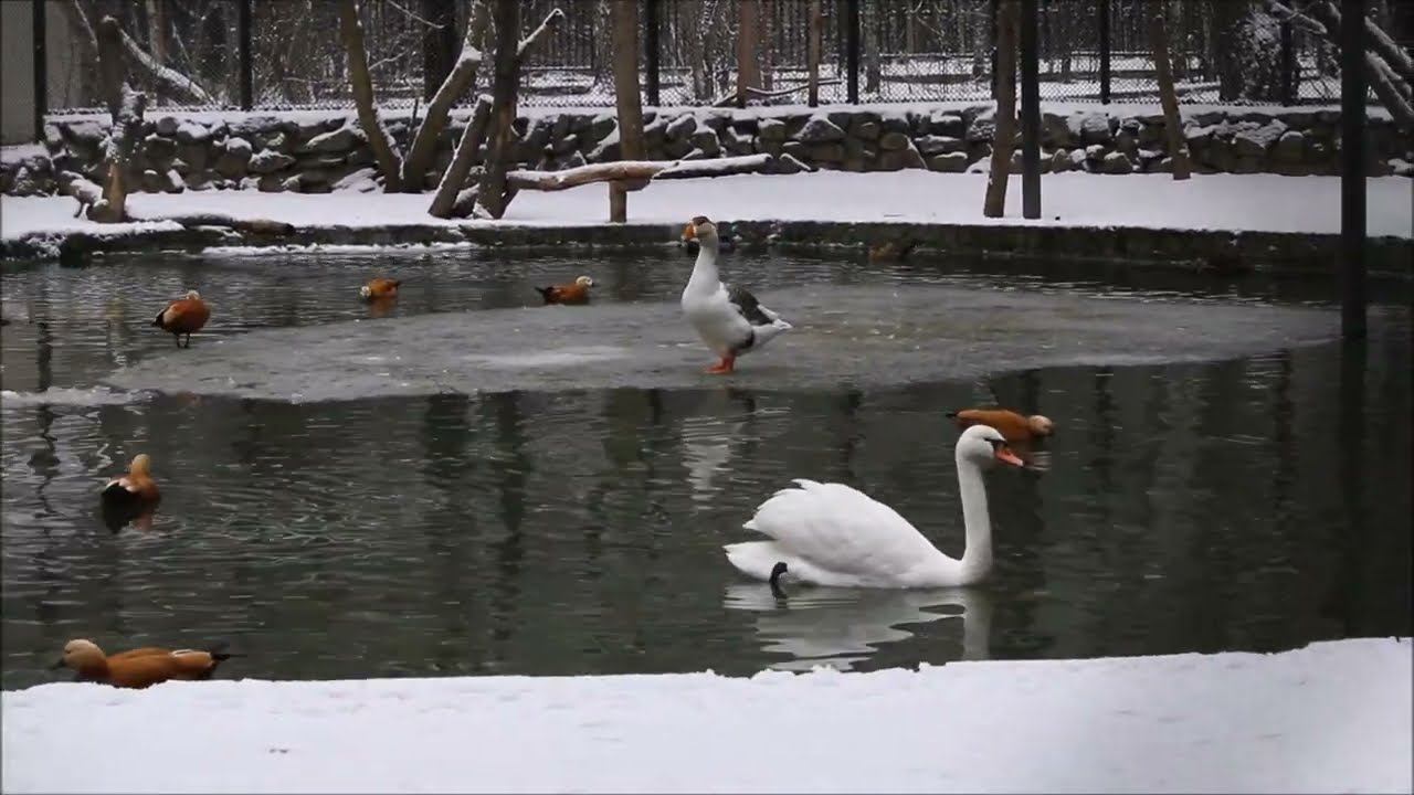 Лебедь, гиси и утки в вольере 27.11.2023