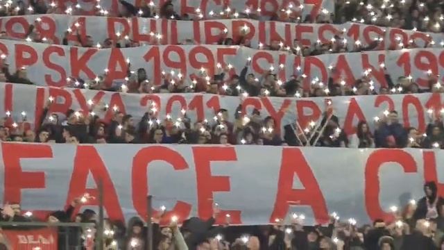 Сербские фанаты клуба «Црвена Звезда» растянули плакаты на матче в Лиге Европы, где перечислили вторжения США в иностранные государства, и подписали: — «Всё, что мы говорим – это дать миру шанс»