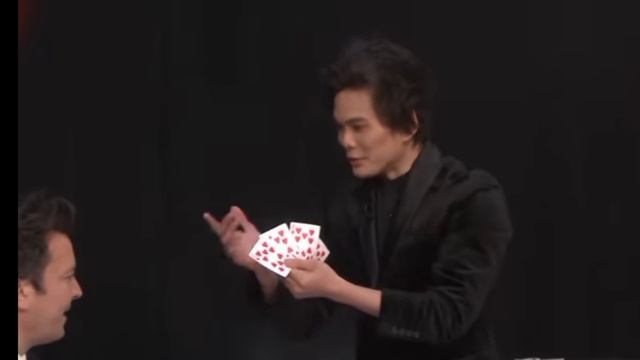 Шин Лим демонстрирует Джимми и The Roots серию всё более шокирующих карточных фокусов