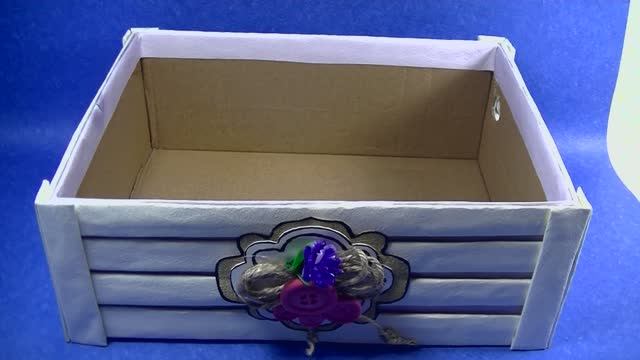 Декор картонной коробки ненужными остатками обоев .