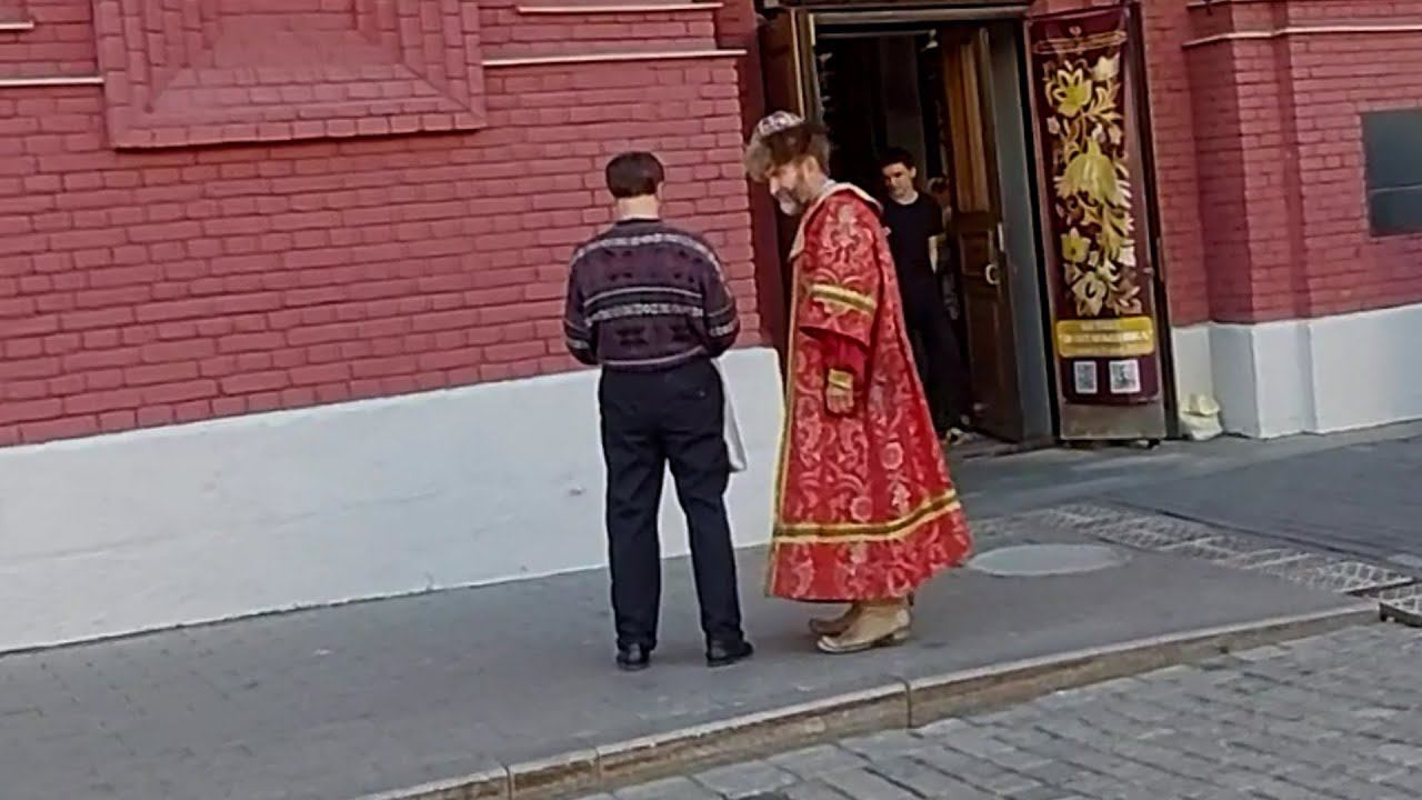 Прям вылитый царь Иоанн Васильевич IV беседует с прохожим на Красной площади в Москве. Посмотрите, просто удивительное сходство. #иоанн #царь #краснаяплощадь
