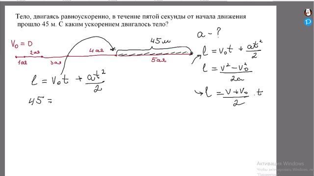 Разбирается решение задачи на путь, пройденный телом за n-ую секунду. Сложность повышенная. Аудитория 9-10 класс.