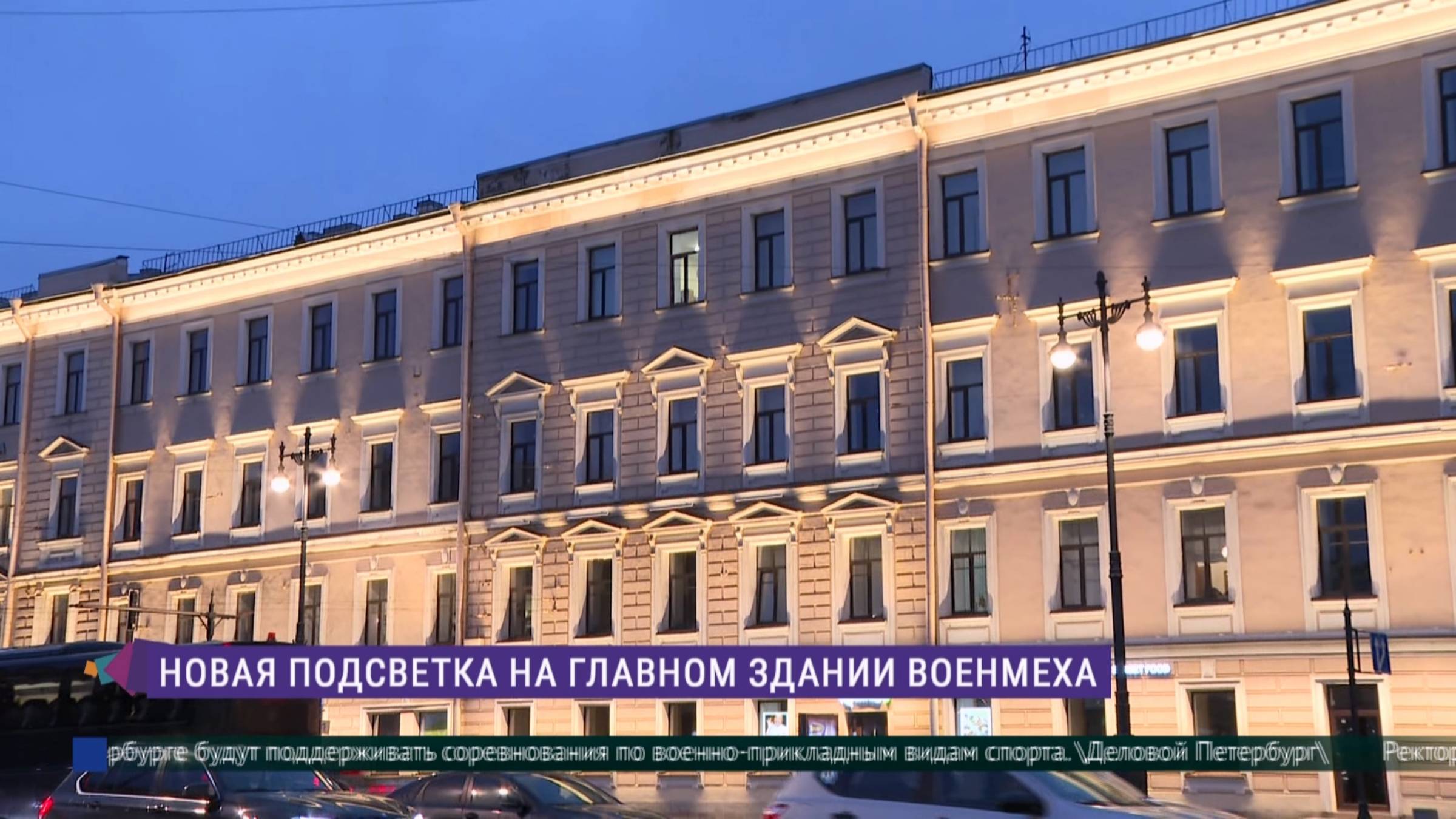 Новая подсветка здания Военмеха на Московском проспекте