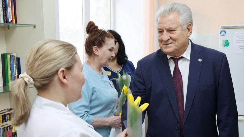 Накануне Международного женского дня депутаты областного парламента поздравили сотрудниц военного госпиталя. ГТРК «Самара», программа «Вести – Самара», 5 марта 2026 года.