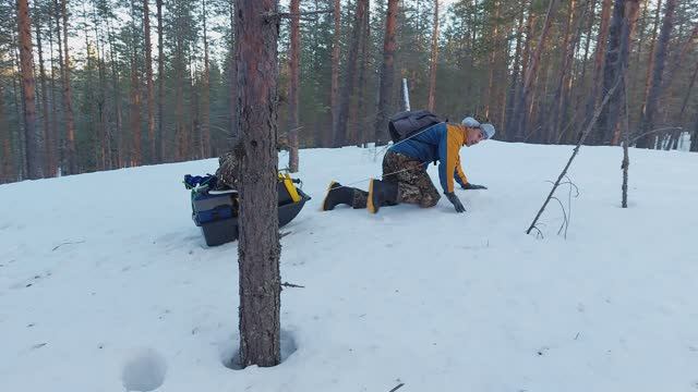 Трудная рыбалка) Когда не взяли лыжи, наст не держит, а идти надо , хоть ползком )