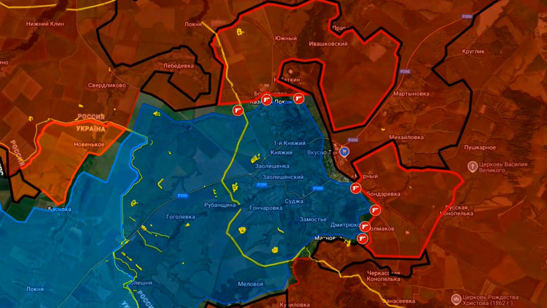 Карта боевых действий в Курской области. Бои идут на окраине Суджи