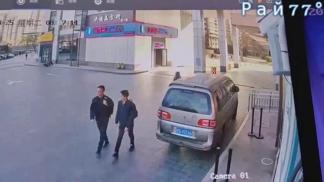 Китаянка на свою беду оказалась на пути у отлетевшей рекламы
