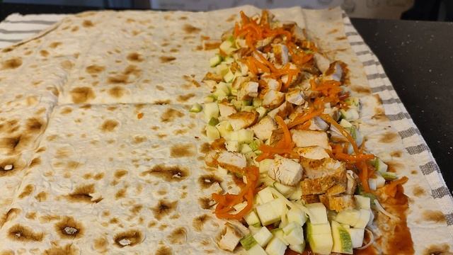 Этот рецепт из кабачка родился случайно, и мне он так понравился, что я решила его сохранить для себя и для Вас! Ели любите кабачки, непременно попробуйте! Нам понадобится на одну порцию: *кабачок 1/2 от молодого кабачка *курица отварная/запеченая/ ветчина -120 грамм *лаваш 75 грамм *любой соус 1 столовая ложка *сыр твердый 25 грамм *перец молотый по вкусу *морковь по корейски 1 столовая ложка #кабачки #рецептыизлаваша #шаурма