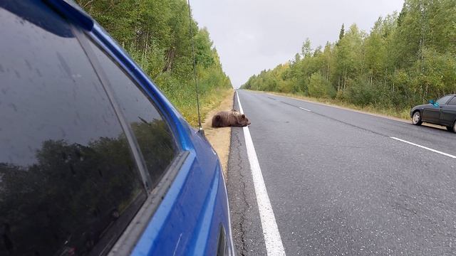 Медведь на трассе возле Ухты 1.