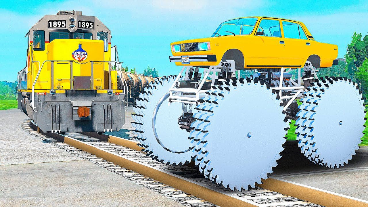 ПРОЕХАЛ РЕЛЬСЫ на ГИГАНТСКОЙ СЕМЕРКЕ С ПИЛАМИ в ГТА 5 МОДЫ - ЭКСПЕРИМЕНТЫ в GTA 5 MODS
