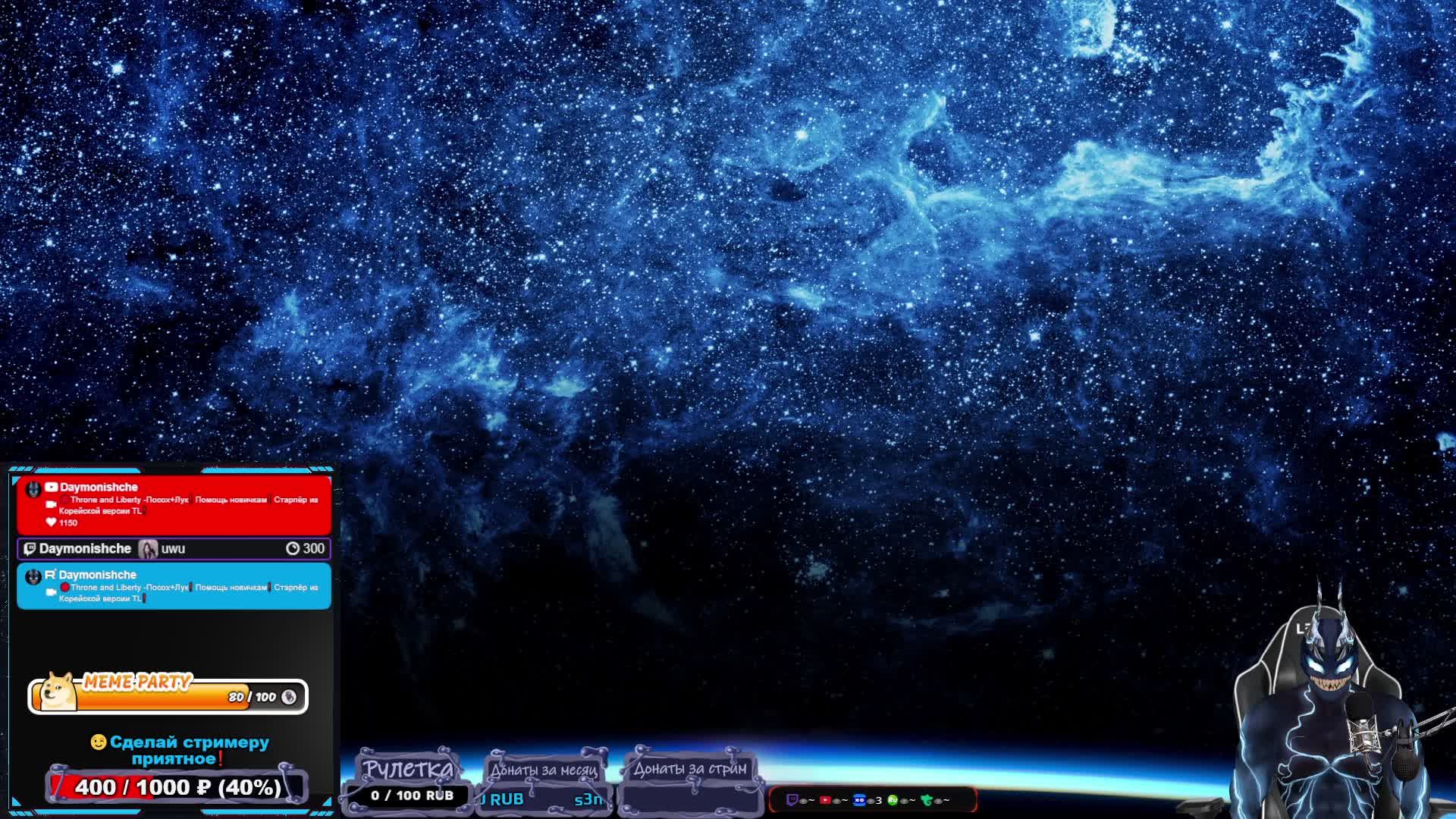 📣Мои социальные сети❗- https://taplink.cc/daymonishche Стриммерством занимаюсь фултайм, и это мой единственный заработок, если у вас есть желание поддержать канал, вот способы как это сделать: 💲1-DonationAlerts Рулетка запускается тут!- https://clck.ru/36VfBR 💲2-Поддержать напрямую Карта МИР Сбербанк- 2202 2067 8729 8624 💲3-Yoomoney- https://clck.ru/37Dfe3 -Без оповещения 💲4-Donatepay- https://clck.ru/37Dfba -Если не получается поддержать через DonationAlerts Благодарю за вашу поддержку❗ ___________________________________________________________________________________________________ Прайс-лист 1️⃣-Отключить аватара на весь стрим (стример покажет своё настоящие лицо)-4999 руб 2️⃣- Заказ Аниме: 500р. за 1 серию (заказ только сразу на фулл аниме) 3️⃣-Заказ фильма: 3999р. 4️⃣-Заказ музыки 50р не длиннее 7 мин, лютый треш могу выключить. ___________________________________________________________________________________________________ 🎸🤣💥Развлечения на стриме❗ 1️⃣🎸Закажи песню на стриме❗-https://donateall.online/s/daymonishche 2️⃣🤣Порадуй зрителя и стримера крутым мемасом❗- https://memealerts.com/6576818d422c4bf13b328d96 3️⃣💥Хочешь отключить экран/клавиатуру/мышку стримеру или кинуть скримера и светошумовую гранату на весь его экран❓ Тебе сюда❗- https://streamengine.app/@daymonishche/effects ___________________________________________________________________________________________________ https://clck.ru/35XhRk – лучшие игровые предметы по моему кодовому слову! Реклама. ООО «АСТРУМ». ИНН 7714480355 ERID 2VtzqxTGdmq 🎁Секретное слово для приобретения сундуков - Даймон 🎮https://trk.mail.ru/c/wm7t23?mt_sub1=4257423 -Начни играть в ArcheAge с бонусами! Реклама. ООО «АСТРУМ». ИНН 7714480355 ERID 2VtzqwHGHQ3 📢Гайд на ведьмака+ мини гайд на угнетателя- https://youtu.be/PpGj8LNDYoE ___________________________________________________________________________________________________ ❗️❗️Правила канала❗️❗️ 1️⃣-Если стример или модераторы заметят что вы абузите твинов в розыгрыше БАН! 2️⃣-Будьте доброжелательны к другим зрителям и стримеру 3️⃣-Избегать обсуждения религии и политики 4️⃣-Мат в меру или пропишу БАН! 5️⃣-За расизм, сексизм, гомофобию и т.п. можно отлететь в БАН! #tl #archeage #daymonishche #стрим #streamer #стример #top #топ #даймонище #архейдж #recommended #рекомендации #venom #веном #тл #тронлиберти #тронэндлиберти #throneandliberty #throneliberty