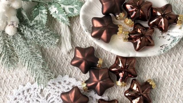 Набор ёлочных игрушек ЗВЁЗДОЧКИ мини, эмалевые и матовые, стекло, тёмный шоколад, 45 мм, 012246