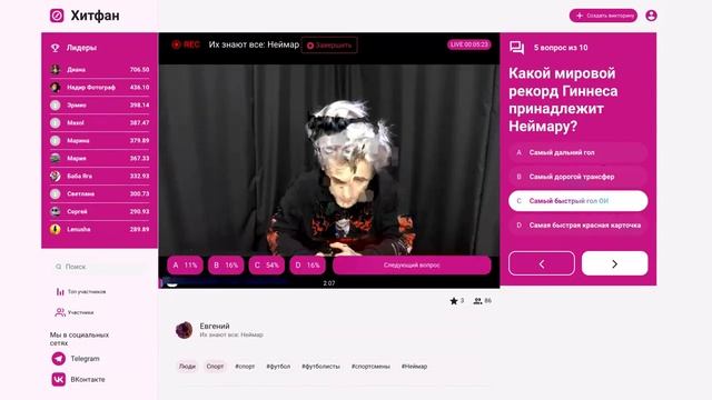 Викторина платформы интерактивных викторин ХитФан с ведущим DFM Евгением Кротовым от 2 ноября