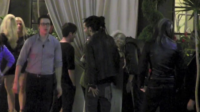 Том Каулитц с братом Биллом Каулитцем, наслаждаются сигаретой вне ночного клуба в Голливуде.