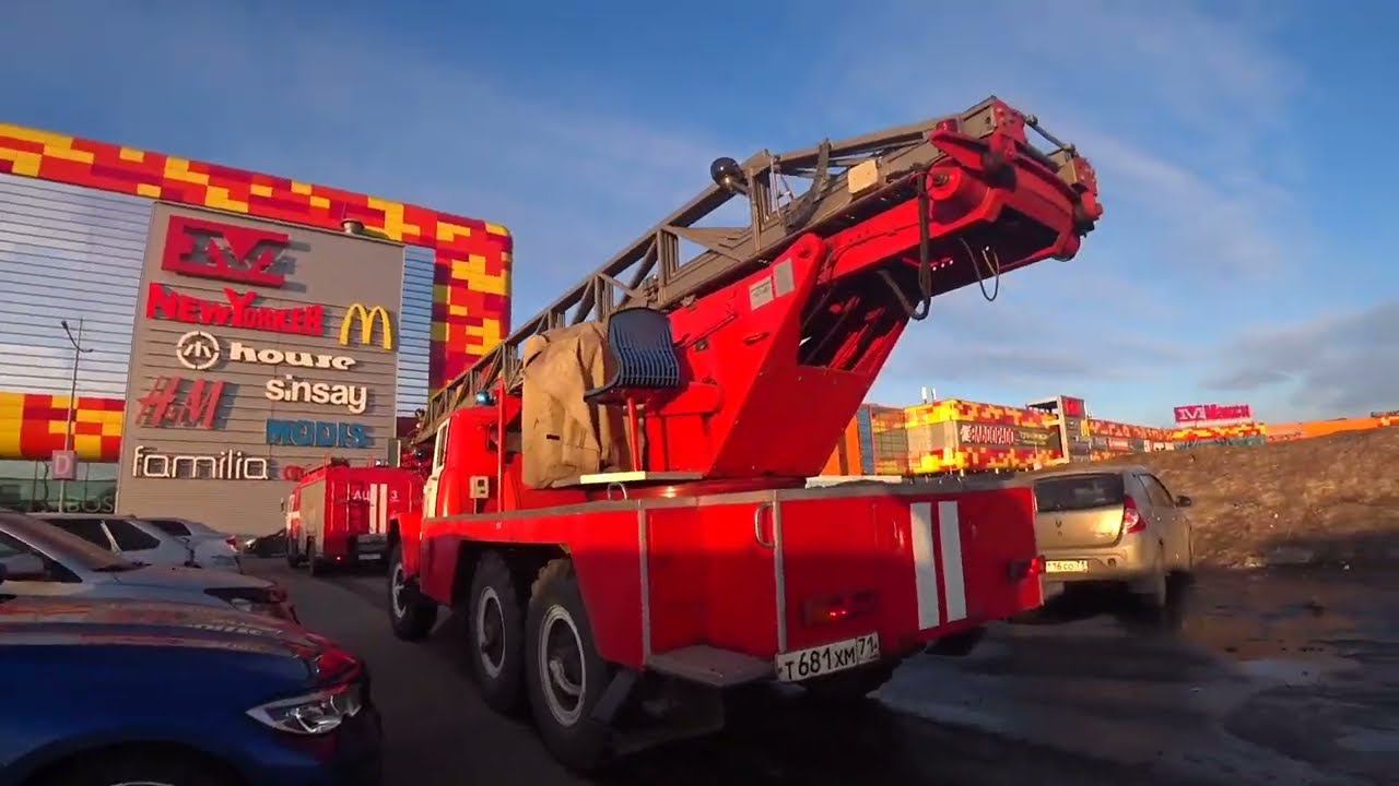 Эвакуация людей из ТЦ "МАКСИ' приехало несколько экипажей пожарных машин