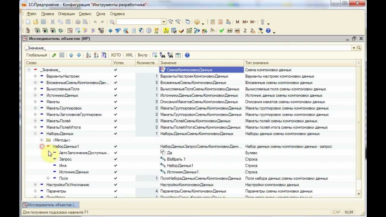 Подсистема "Инструменты разработчика" 2.80 для платформы 1с http://devtool1c.ucoz.ru . Исследователь объектов