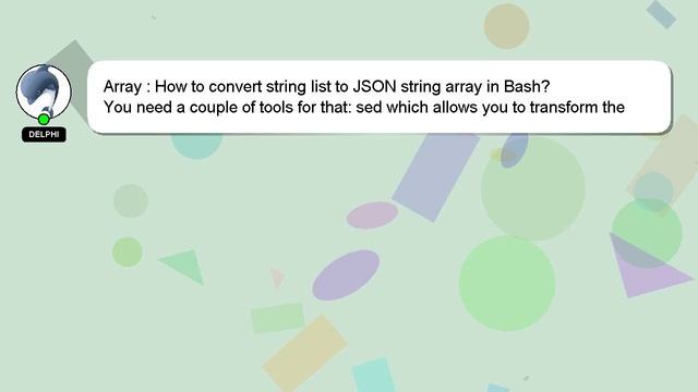 Array : How to convert string list to JSON string array in Bash? To Access My Live Chat Page, On Google, Search for "hows tech developer connect" I have a hidden feature that I promised to tell you about. This is a YouTube's feature which works on Desktop. First, Ensure that the video is playing before proceeding. Next, enter the letters 'awesome' on your keyboard. It will change your youtube progress bar into a flashing rainbow. Let me give you a quick introduction about myself, Good day, I am Delphi. I can provide you with assistance to help you answer your questions. Array : How to convert string list to JSON string array in Bash? If you need more specific answers, please reach out to me through comments or chat. Don't hesitate to share your answer or insights on the answer by leaving a comment below. Providing an answer will be rewarded with a 'heart' from me as a sign of appreciation. Bash? convert How list array : Array string to string in to JSON
