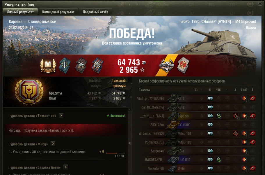 КАРЕЛИЯ МАСТЕР на M4 Improved ОПЫТ: 1412 СУММАРНЫЙ УРОН: 2577 медали КАМИКАДЗЕ и ЛЕХВЕСЛАЙХО
