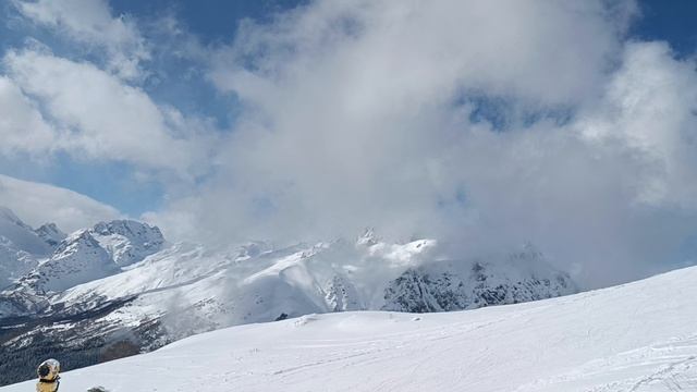 Горнолыжный курорт Домбай, спуск по трассе .