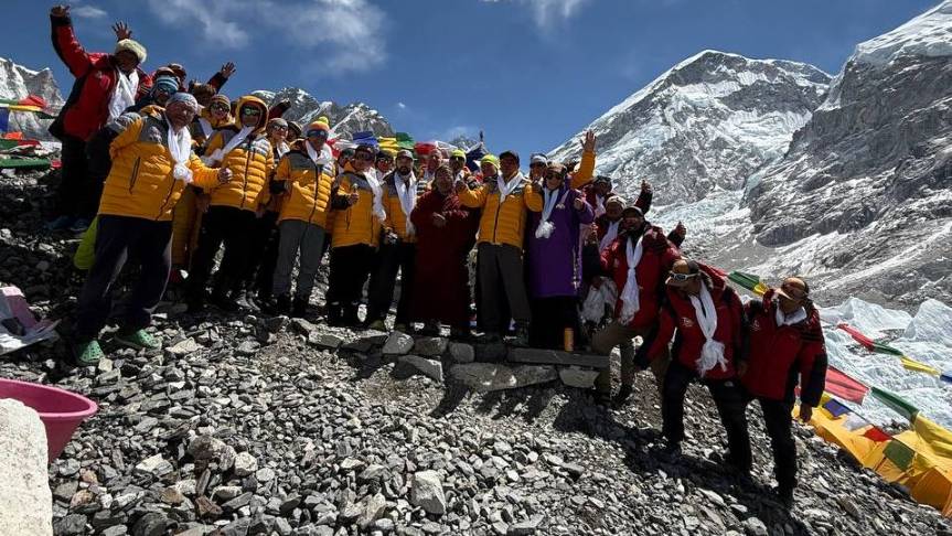 Церемония пуджи в базовом лагере экспедиции на Эверест Клуба 7 Вершин и клуба 8000