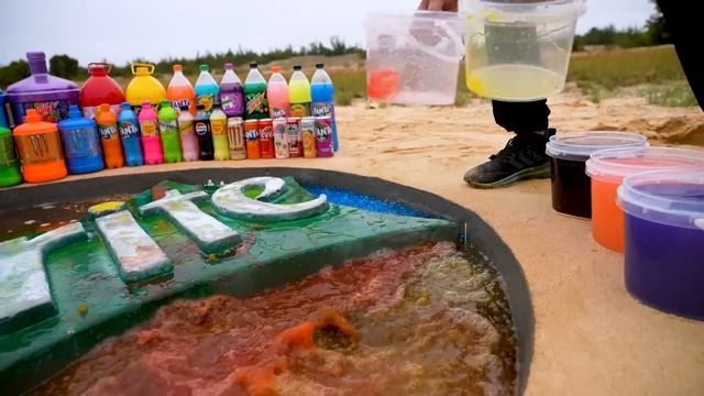 Как сделать радужный логотип Sprite с помощью цемента, воздушных шаров Fanta, Big Mtn Dew, Coca Cola