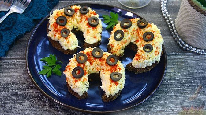 Бутерброды "Подкова" из черного хлеба с куриным филе, яйцами и сыром — это не только вкусно, но и символически, они отлично украсят новогодний стол в 2026 году. Такие аппетитные бутерброды станут ярким дополнением к вашему застолью. Продукты (на 6 порций) Хлеб черный - 6 ломтиков (230 г) Куриная грудка - 200 г Сыр твёрдый - 50-70 г Яйца - 2 шт. Майонез - 60 г Чеснок - 2 зубчика Маслины - 20 г Паприка копченая - 0,5 ч. ложки Соль - 1 ч. ложка Перец черный молотый - 0,4 ч. ложки Лавровый лист - 2 шт. #БутербродыСКурицей #БутербродыССыром #БутербродыСЯйцами