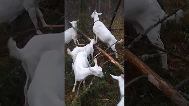 Козы хорошо едят еловый лапник.