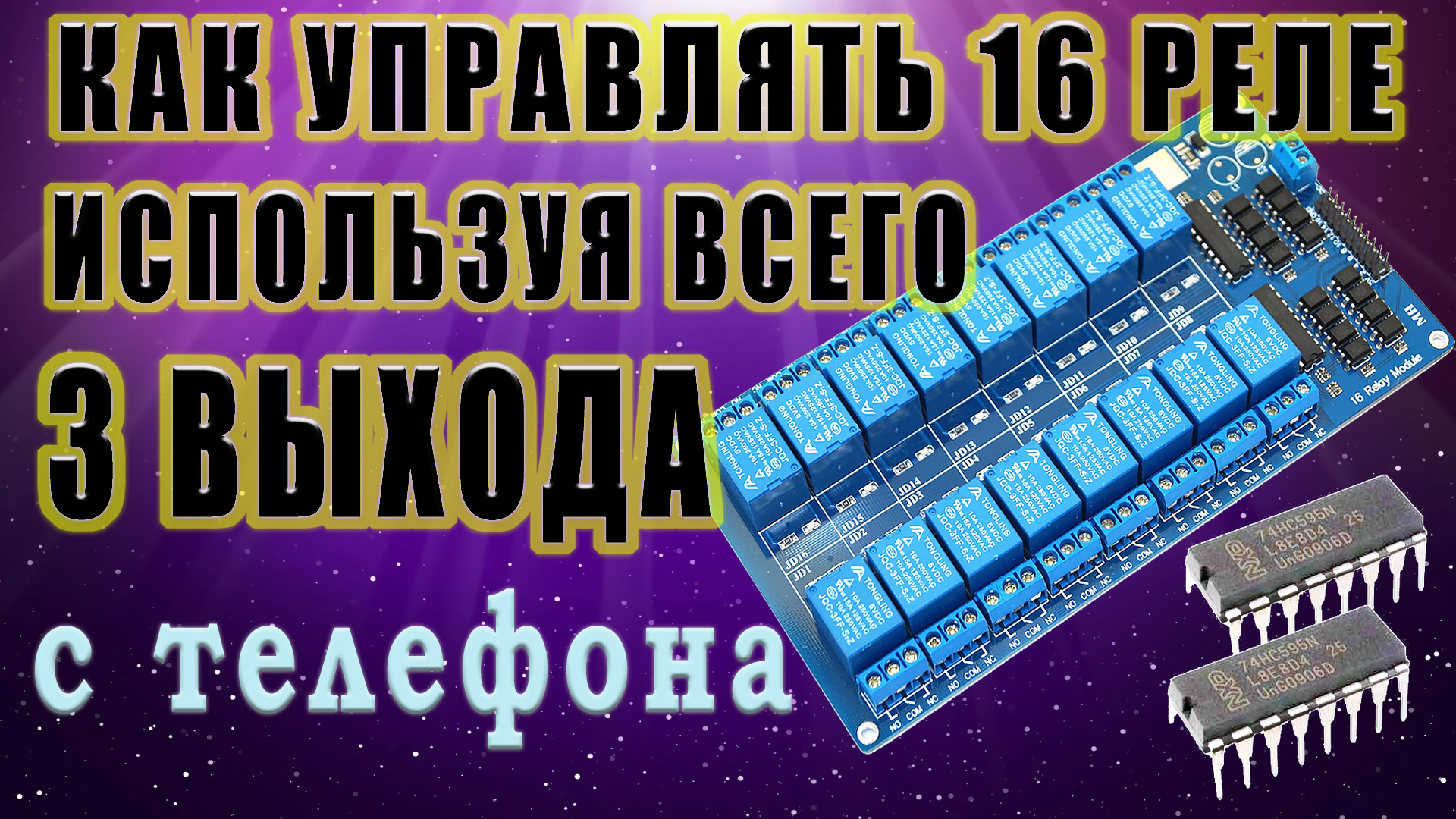 Как подключить сдвиговый регистр 74HC595 и управлять 16 реле с телефона. Вы узнаете как управлять 16, а можно и больше, реле со своего телефона. Что такое и как установить выходной сдвиговый регистр 74hc595. Микросхема 74hc595 - добавит выходы на Ардуино или ESP 8, 16, 24, 32 и так далее и всё это без потери скорости. А занимает всего 3 выхода на микроконтроллере.