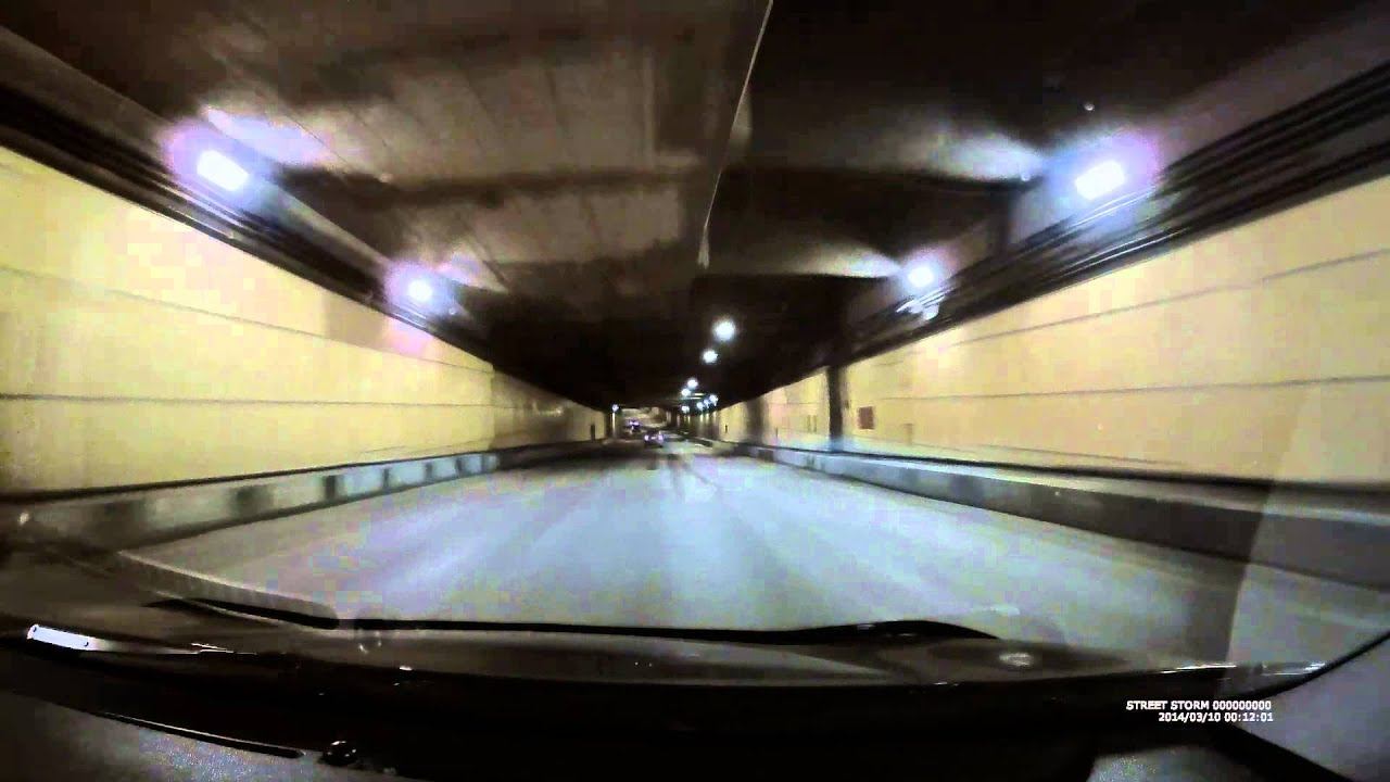 Ночь, освещенный тоннель, выезд из тоннеля. Передняя камера. Street Storm CVR A7620 подробнее тут: http://car-radar.ru/product/street-storm-cvr-a7620/