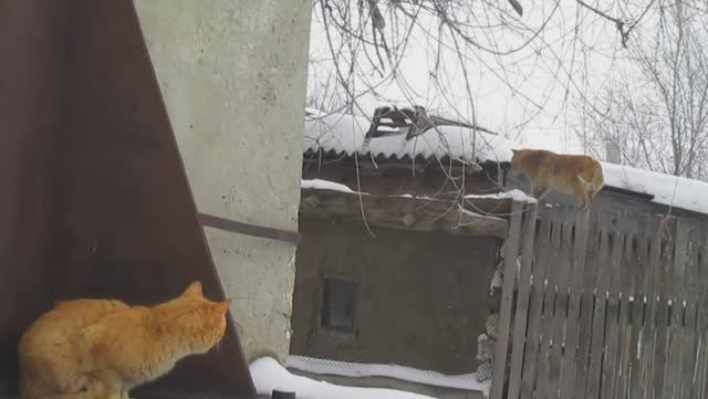 За два дня до весны случайно сняла на видео двух котов. Один грелся у трубы, другой появился почти рядом, потом пошёл по своим делам...