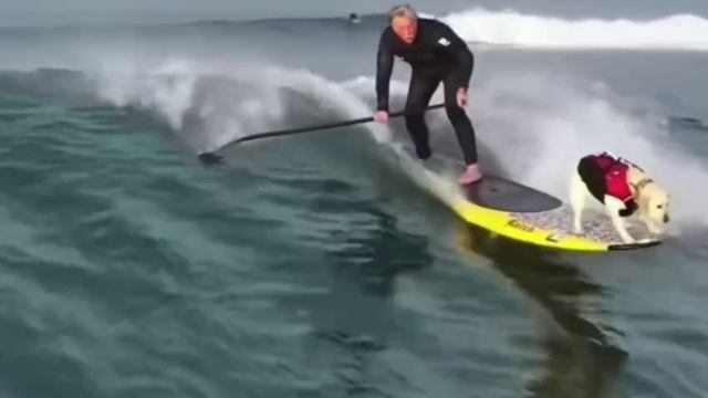 На гребне волны🌊🏄♂️ ( видео про собак )
